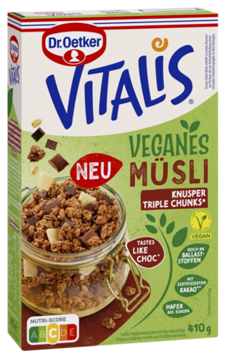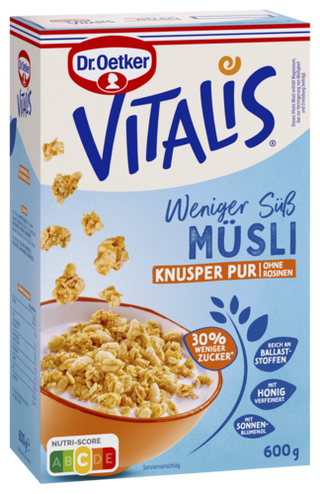 Vitalis, der perfekte Start in den Tag! Starte mit Schwung und Genuss in den Tag. Ob knusprig, fruchtig, oder schokoladig – Vitalis bietet für jeden Geschmack das richtige Müsli! NEU: Von Vitalis gibt es jetzt auch köstlichen Porridge im Einzelportionspack - schnell und einfach mit heißem Wasser zubereitet!