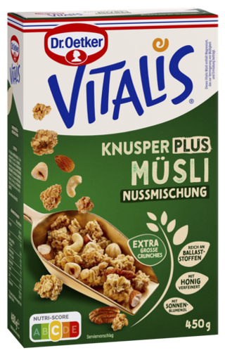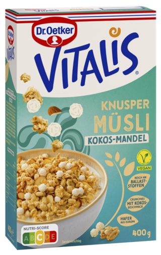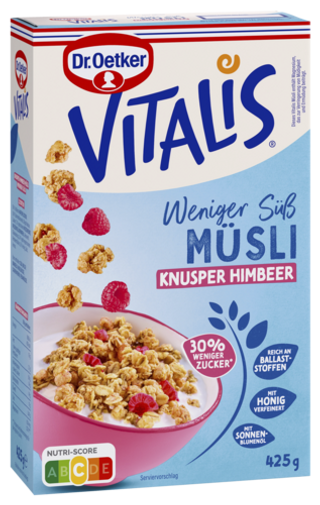Ob als genussvoller Start in den Tag oder kleiner Snack zwischendurch: Mit unserem Dr. Oetker Vitalis Müsli startest du ausgewogen in den Tag! Vom klassischen Schokomüsli, Früchtemüsli oder unserem Vitalis Weniger Süß - wir haben die passende Müsli-Mischung für dein Frühstück!