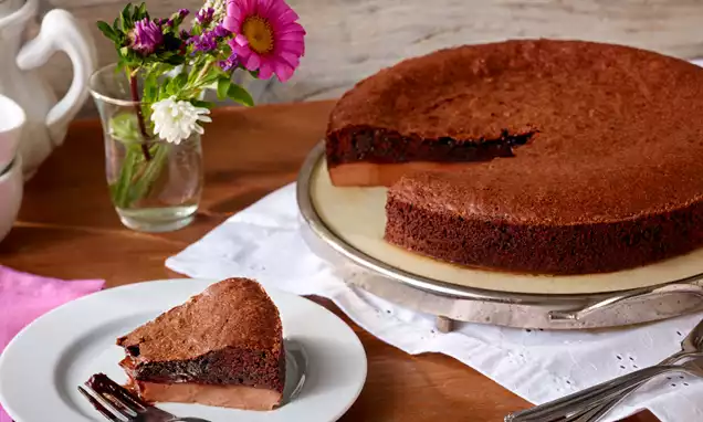 Schlagobers aufkochen. Vom Herd nehmen und die Kuvertüre unter Rühren darin schmelzen. Die Schokosoße über den heißen Brownie gießen und servieren.