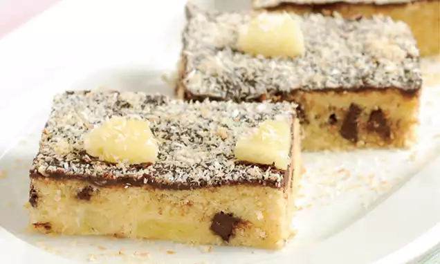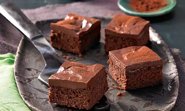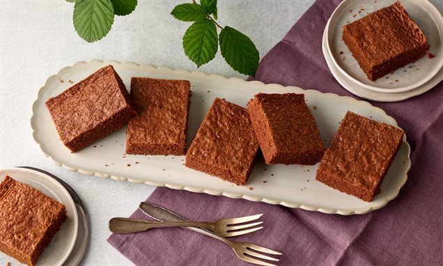 Einen Backrahmen (20 x 30 cm) auf ein befettetes, bemehltes Backblech stellen. Die Masse einfüllen und glatt streichen.