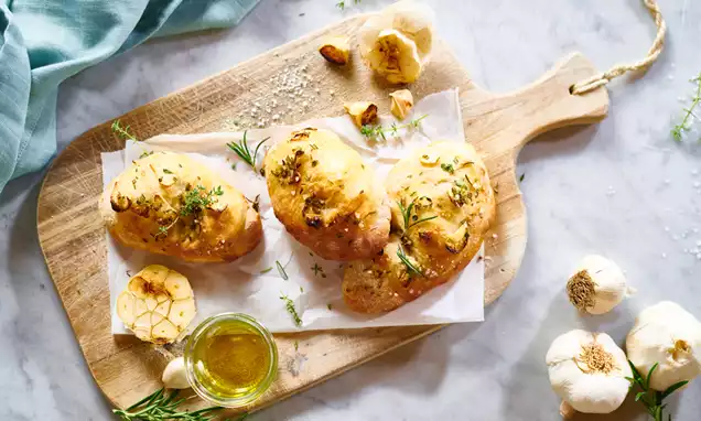 Den Teig auf eine Arbeitsfläche geben, zusammenstoßen (flach drücken und von links nach rechts zur Mitte hin einschlagen), in 80 g-Stücke teilen und rund formen. Die Teigkugeln auf zwei befettete, bemehlte Backbleche geben und ca. 5 Min. rasten lassen.