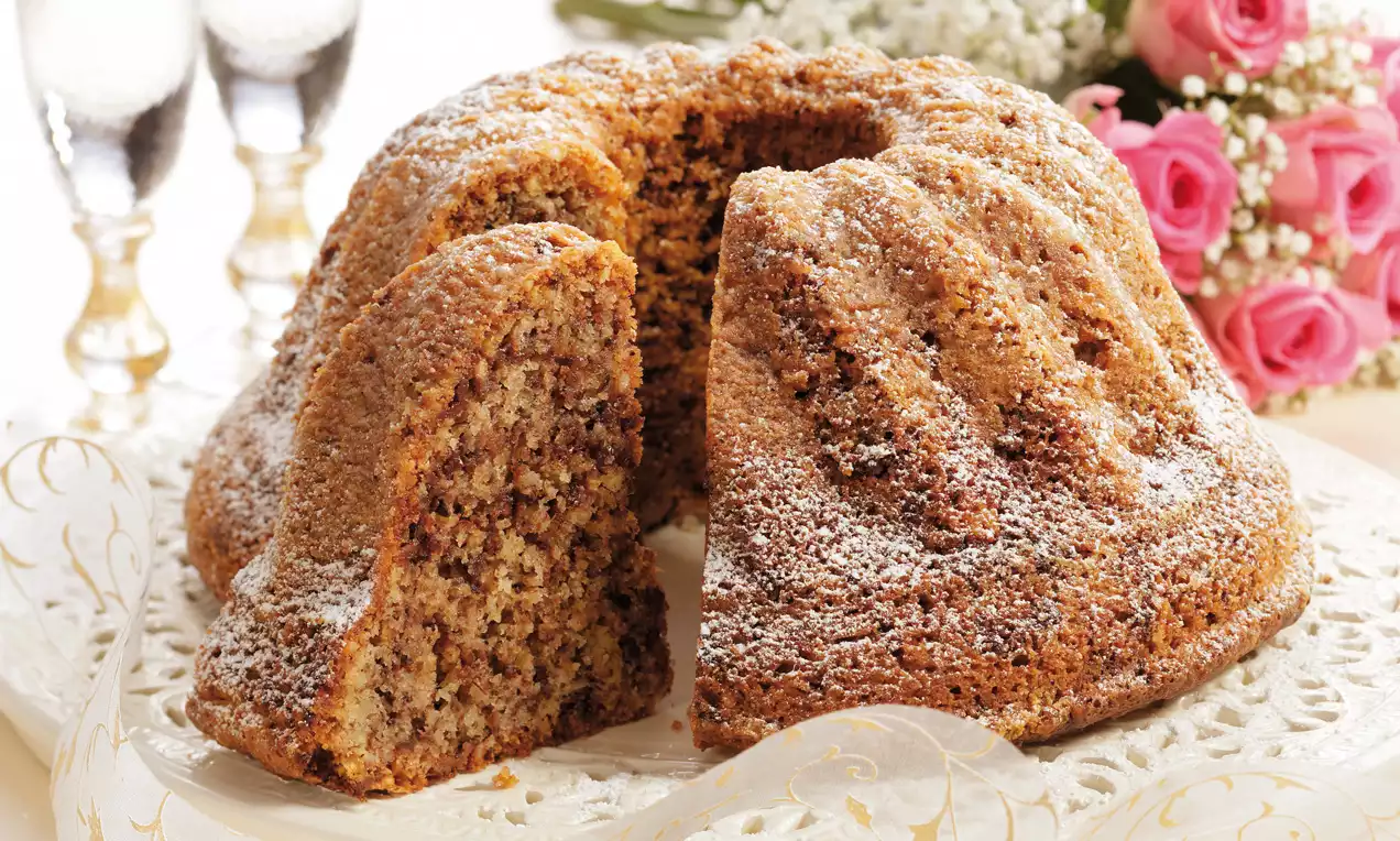 Den erkalteten Kuchen mit Staubzucker bestreuen.