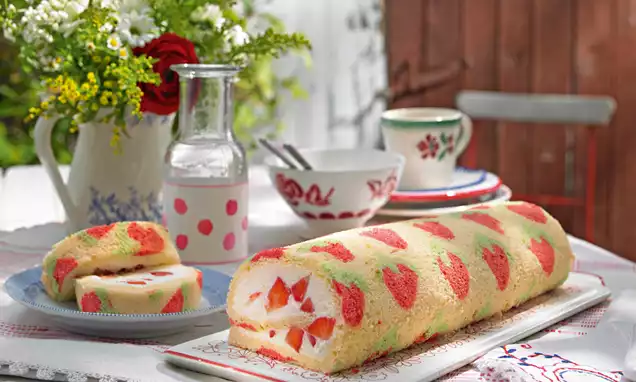 Den Tortenring mit einem feuchten Messer lösen und entfernen. Die Torte vor dem Servieren mit Staubzucker bestreuen.