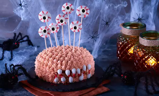 Die Creme auf dem Tortenboden verteilen und glatt streichen. Den Tortenoberteil in 14 Stücke schneiden und auf die Füllung legen. Die Torte mind. 4 Std. kalt stellen.