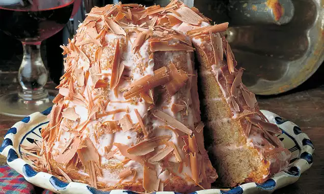 Den Fruchtaufstrich aufkochen und mithilfe eines Pinsels auf der Torte verstreichen.
