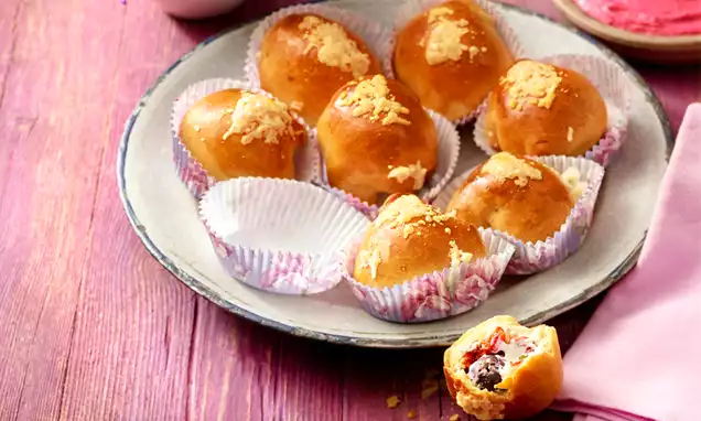Die Kekse mit Creme bei beginnender Gelierung zusammensetzen.
