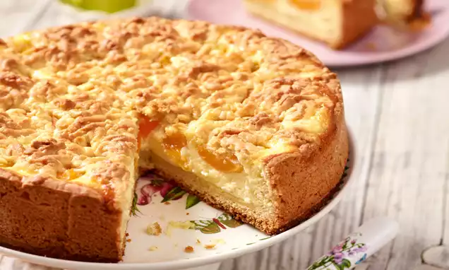 Für die Füllung die Gelatine nach Packungsanleitung vorbereiten. Topfen mit Marillenpüree und Staubzucker verrühren. Die erwärmte Gelatine einrühren und das Schlagobers unterheben. Die Füllung so auf das Biskuit streichen, dass im ersten Drittel der Roulade eine leichte Erhöhung entsteht. Die Marillen aufstreuen.