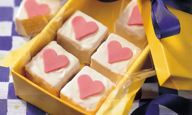 Die Masse in eine am Boden mit Backpapier ausgelegte Herz-Springform (25 cm Ø) geben und glattstreichen.