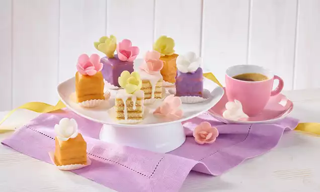 Die Teigstücke mit Pfirsichspalten belegen; dabei einen ca. 2 cm breiten Rand lassen. Die Himbeeren mittig auflegen und den Rand vorsichtig zur Mitte hin über die Pfirsiche klappen.