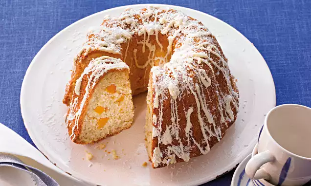 Die Pfirsichspalten mit Rum und Braunzucker vermischen und ziehen lassen.