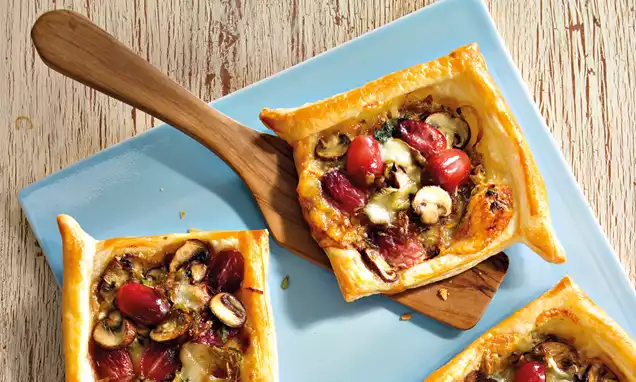 Den Teig ca. 30 Min. vor der Verarbeitung aus dem Kühlschrank nehmen und bei Raumtemperatur stehen lassen. Den Teig in gleich schwere Stücke teilen, auf einer leicht bemehlten Arbeitsfläche rund formen (rund wirken) und ca. 10 Min. rasten lassen.