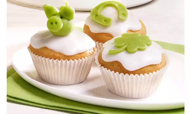 Für den Zuckerguss die Glasur in 4 Portionen aufteilen. Mit Speisefarben bis zum gewünschten Farbton einfärben und in Spritztütchen füllen. Am Cookie die Karos beliebig damit auffüllen und mit Streudekor dekorieren.