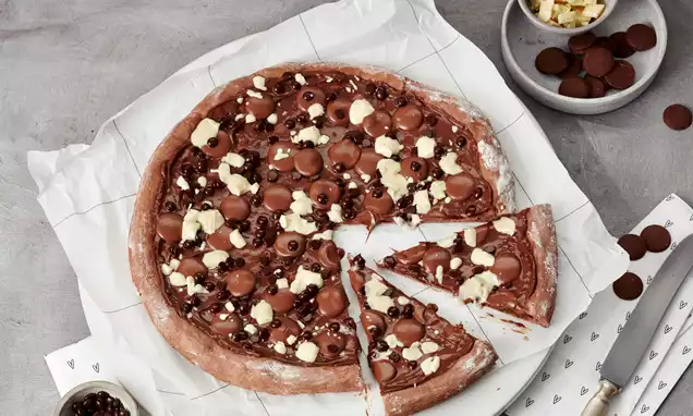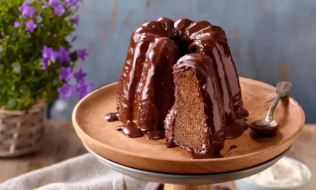 Die Masse in eine befettete, bemehlte Herzform (24 cm Ø) füllen und glatt streichen.