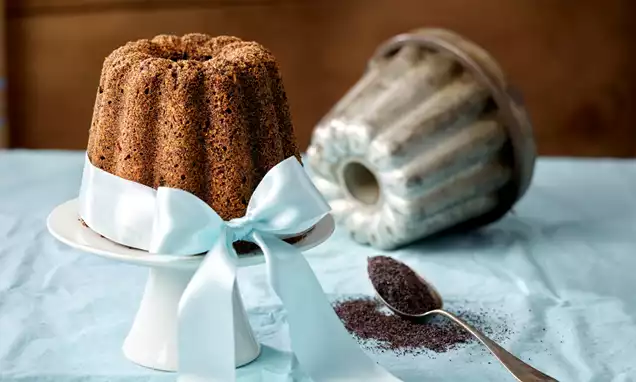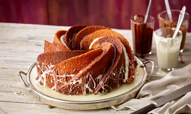Die Backmischung mit Eiern, Wasser und Öl in eine Rührschüssel geben und mit dem Handmixer (Rührstäbe) glatt rühren. Schokoraspeln (in der Pkg. enthalten) unterrühren. 1/3 der Masse in die vorbereitete Form streichen.