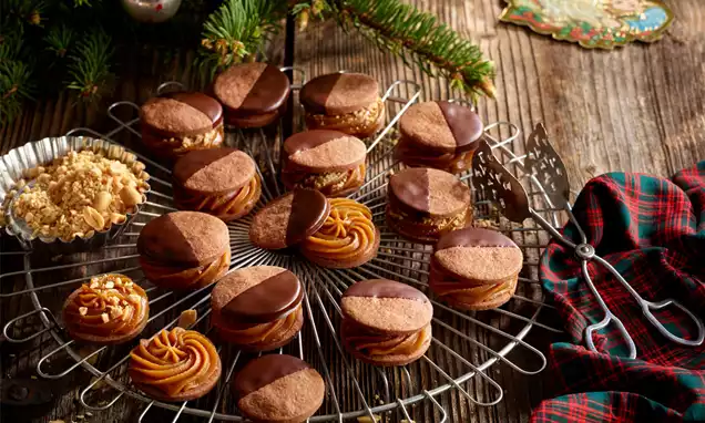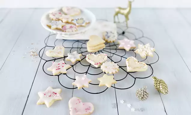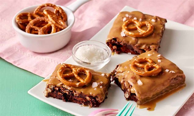Bevor die Glasur anzieht etwas Meersalz darauf streuen und mit Salzbrezeln dekorieren.