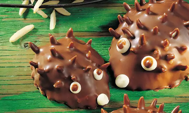 Das Schokoeierkonfekt vor dem Servieren auf der Tarte verteilen und leicht andrücken.