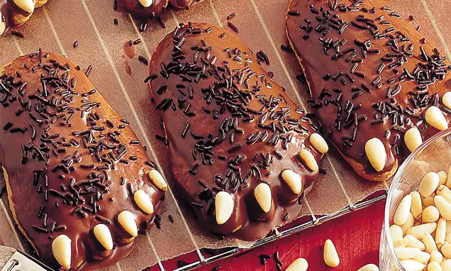 Die noch warme Füllung auf die Palatschinken aufteilen. Die Palatschinken zusammenklappen oder einrollen und mit Staubzucker bestreut servieren.