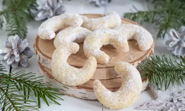 Staubzucker mit Vanillin Zucker vermischen und die noch warmen Kipferln darin wälzen oder damit bestreuen.