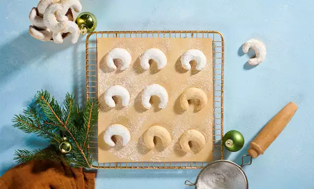 Den Backvorgang mit den übrigen Kipferln wiederholen.